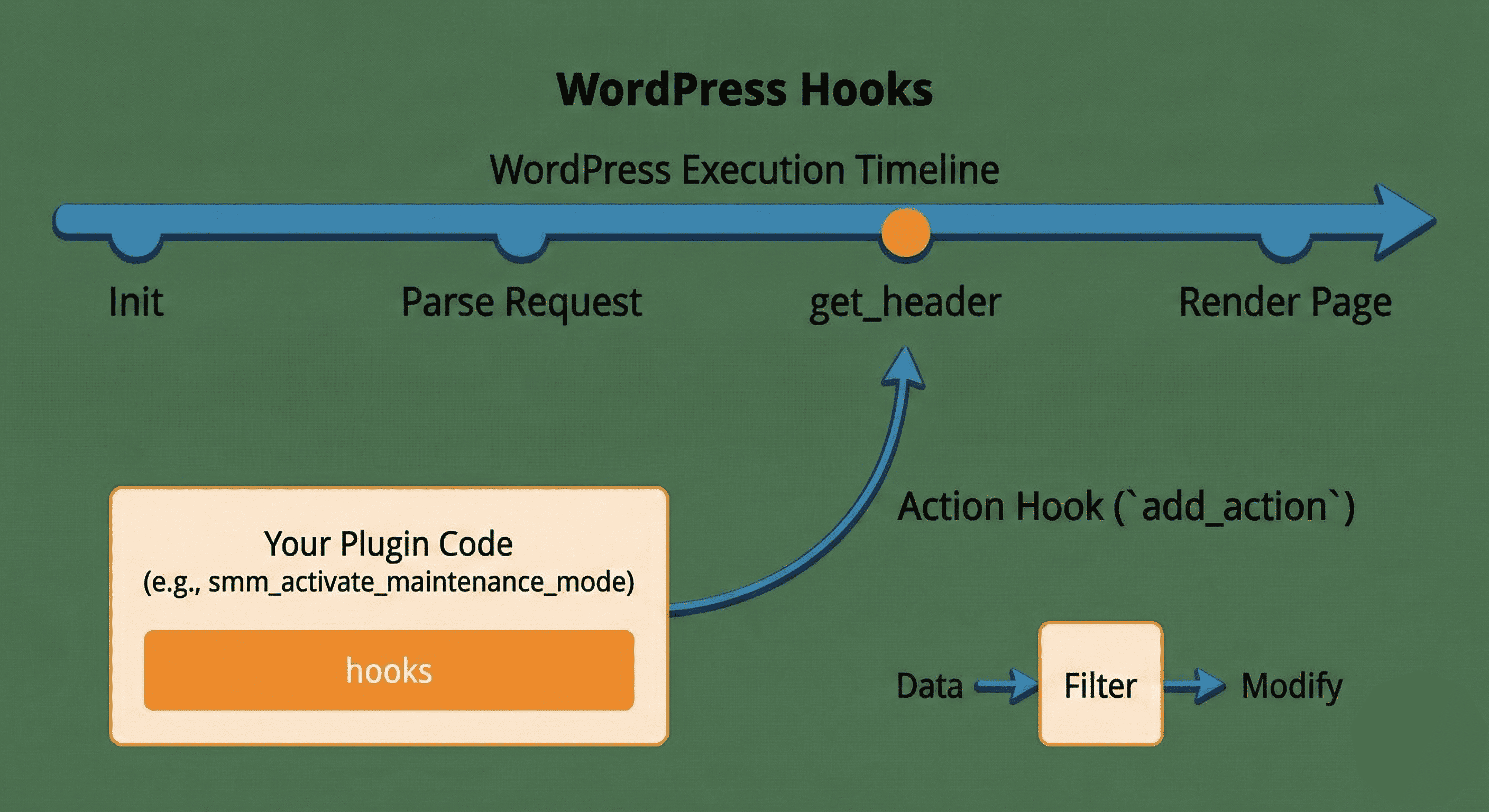The magic of WordPress lies in Hooks. They allow you to "hook" your code into specific points of the WordPress execution timeline without modifying core files.